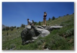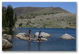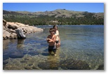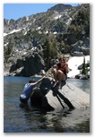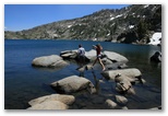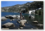 Here's pictures of our family (less Cody) camping trip to the Lake Tahoe Area.  Cody was spending the Fourth with his girlfriend and her family at Pismo Beach on the coast.  We camped at Hope Valley Campgrounds (about 30 minutes from Lake Tahoe).  On Thursday, we drove up to the mountains and hiked back to Lake Winnemuca.  The hike was about 5 miles.  We spent the fourth at Sugar Pine Point State Park on the West shore of Lake Tahoe.  We came home on Saturday, July 5th but stopped off at Caples Lake for a little more lake and sun. Click a picture to see a larger view.