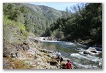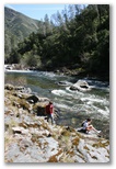 Here's pics from our first hike of the year at Hite's Cove in the Sierras.  The trail is along one of the forks of the Merced River running out of the Sierras and Yosemite Valley.  As you can, the spring wild flowers were in full bloom and we even ran across a few salamanders which is unique to the spring as it's too hot and dry later in the year.  Miranda was accompanied by her "friend that's a boy" Justin.